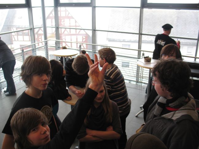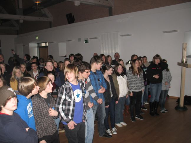 Das Programm aus Stuttgart, wie auch das bei uns, empfanden wir alle als super, es waren rund 40-60 Jugendliche pro Abend. Es gab zwei tolle Moderatoren, Christian Kolb und Anna Becker, die uns toll unterhalten haben. Und leckeres Essen nach dem Programm. Wir saßen alle bei uns im Gemeindehaus auf Pappstühlen, bis auf drei VIP- Gäste, die spontan aus den Zuschauern ausgewählt wurden. Sie hatten nämlich ein gemütliches Sofa in der Ersten Reihe mit Verpflegung.